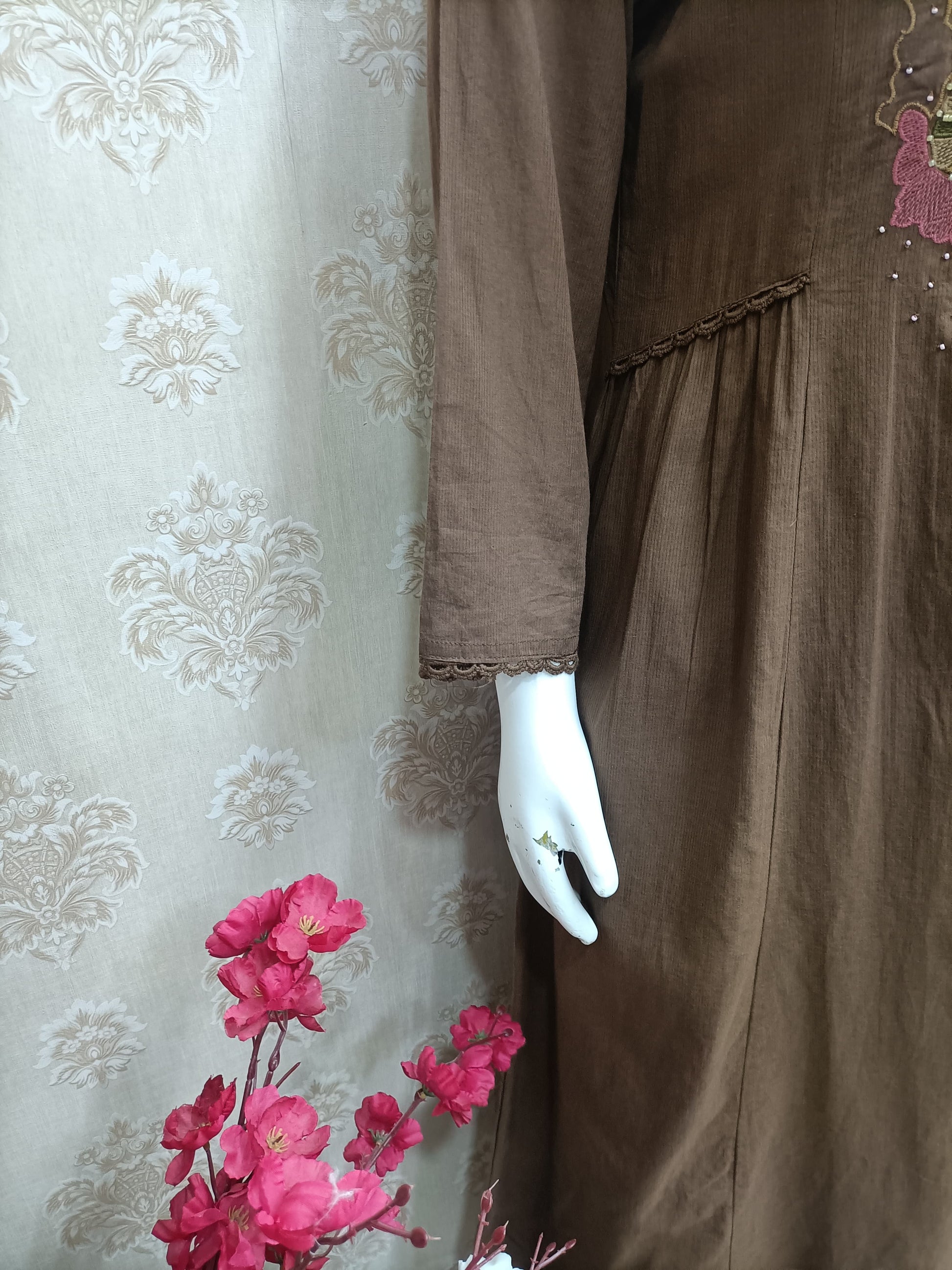 Step into effortless grace with our stunning Earth Brown Embroidered Kurta Set. Crafted from a comfortable cotton blend fabric, this elegant outfit is a perfect blend of traditional handwork and contemporary style. The rich, earthy brown color offers a sophisticated look, ideal for both festive occasions and chic daily wear.