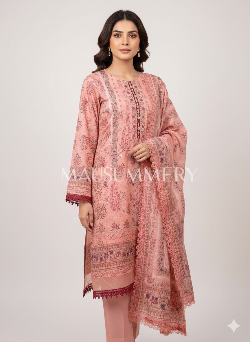 Mausummery Lawn Suit Set | Pakistani Print with Lace Detailing