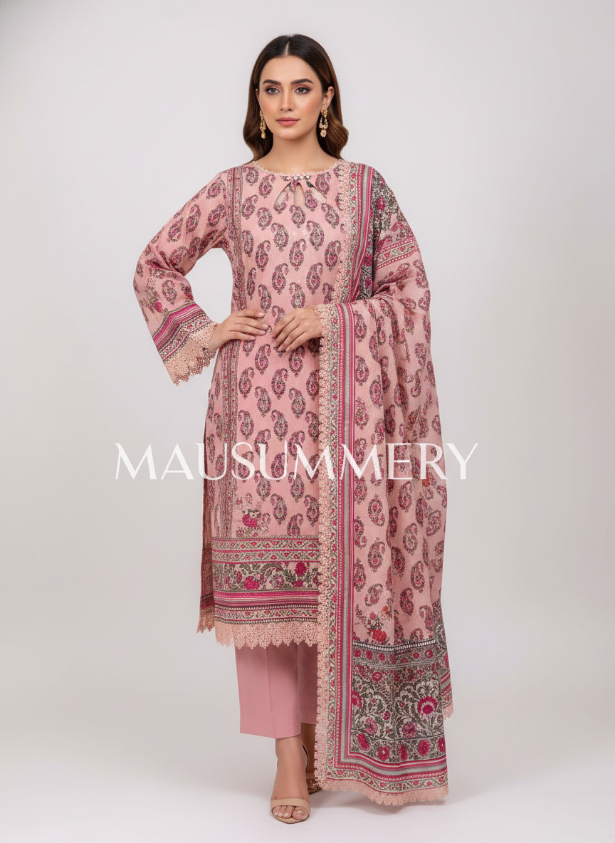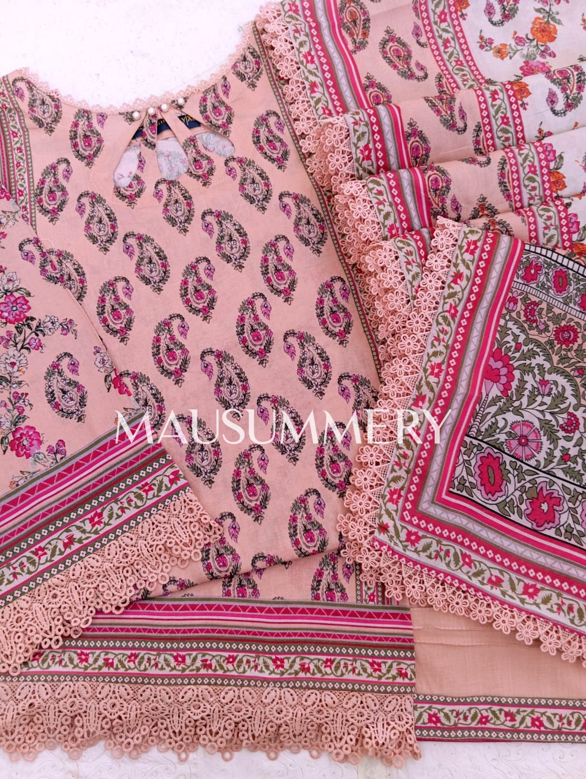 Mausummery Lawn Suit Set | Pakistani Print with Lace Detailing