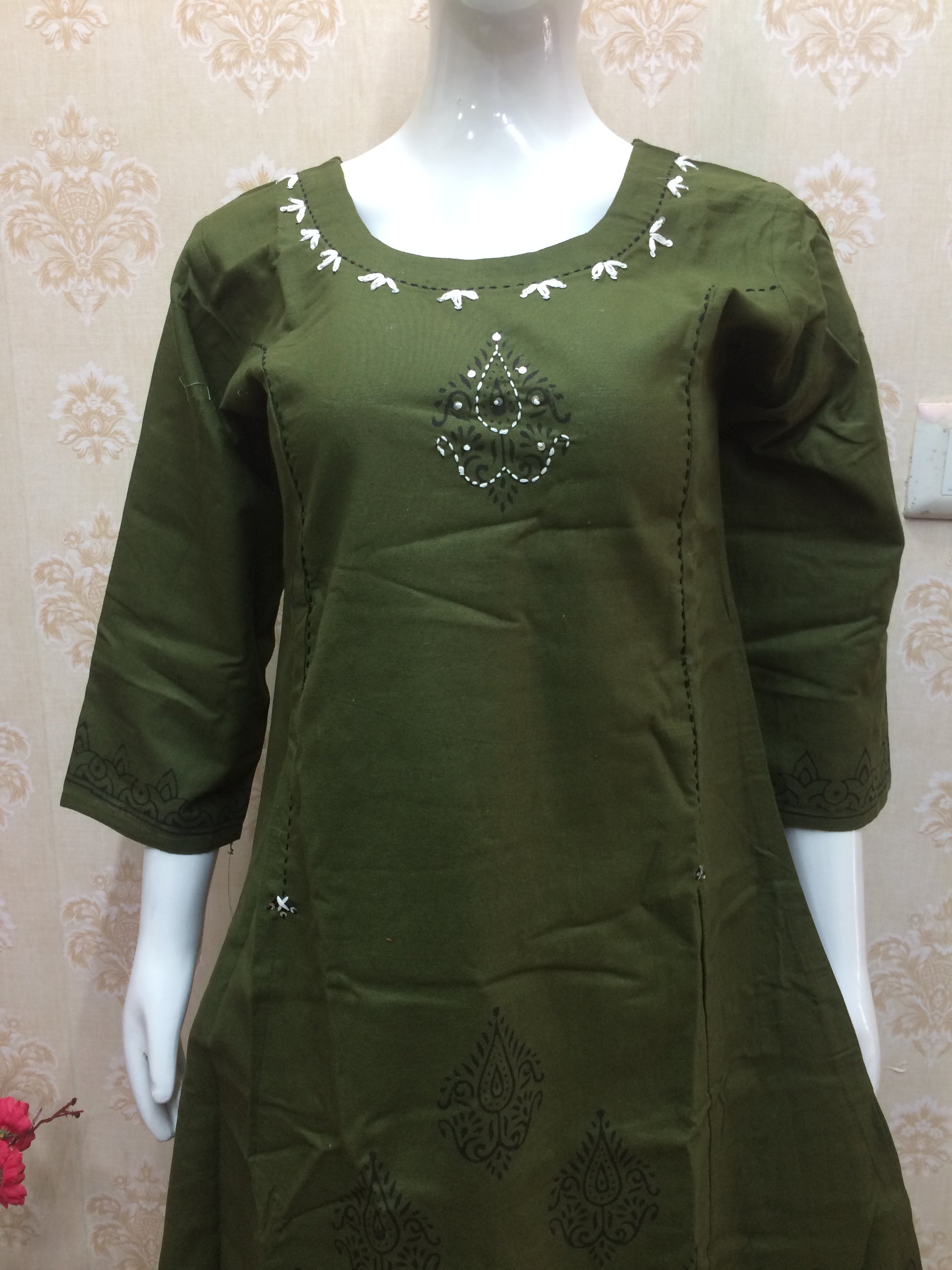 Step into classic elegance with our stunning olive green khadi 2-piece set. Crafted from authentic, handloom-woven khadi fabric, this set is a perfect blend of comfort and style. The kurta features intricate thread work on the yoke, adding a touch of sophisticated detail to the rich olive green color. This set offers a perfect balance of a relaxed fit and a chic, coordinated look, making it an ideal choice for office wear, casual outings, or a refined everyday style.