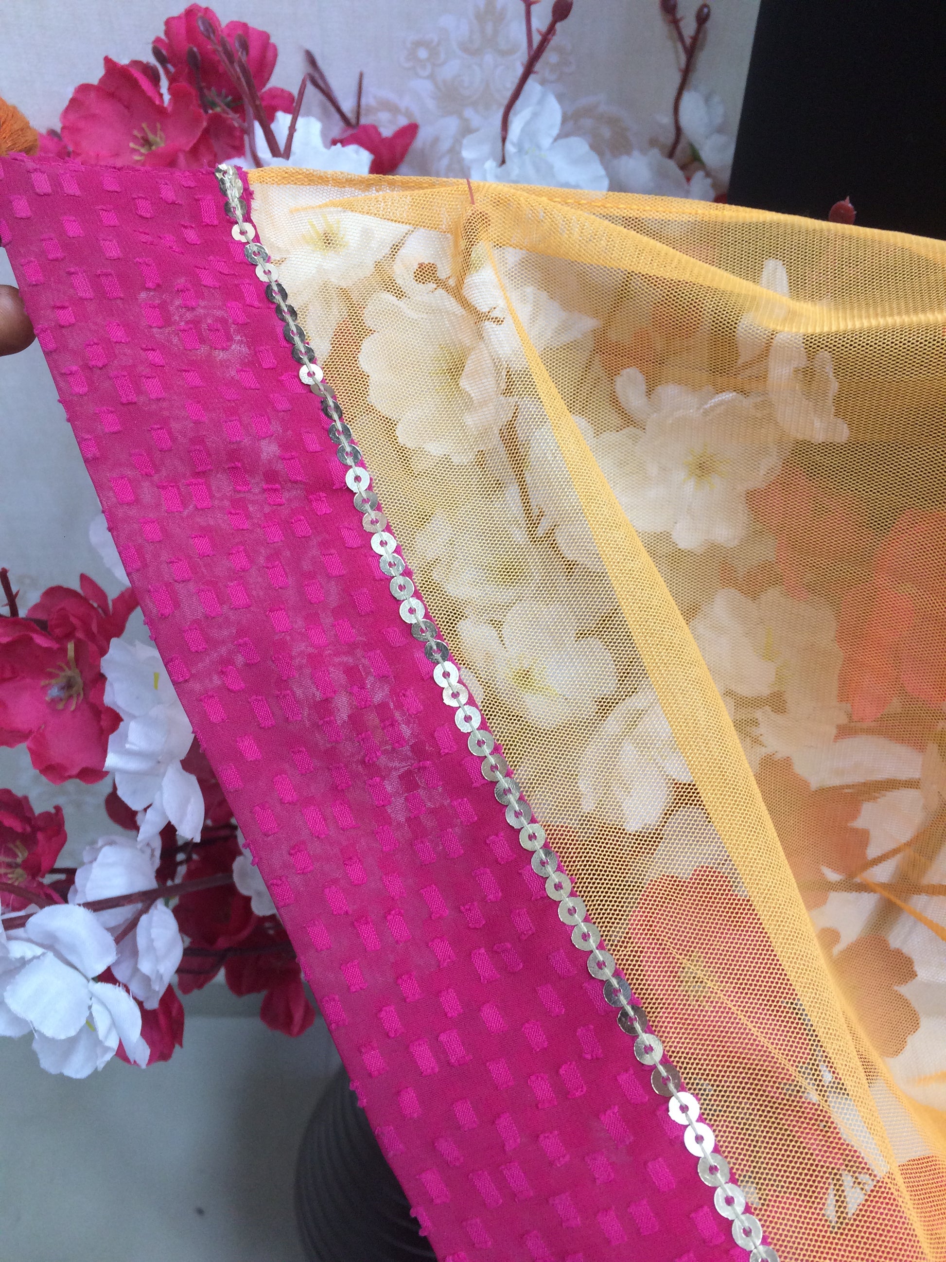 Elevate any ethnic outfit with this stunning vibrant orange dupatta. Crafted from soft, flowing chiffon fabric, it drapes beautifully and adds a pop of sunshine to your look. The subtle yet striking contrast border in deep pink/maroon adds a touch of elegance. Perfect for pairing with your favorite suits, lehengas, or kurtis for a festive, wedding, or everyday look!