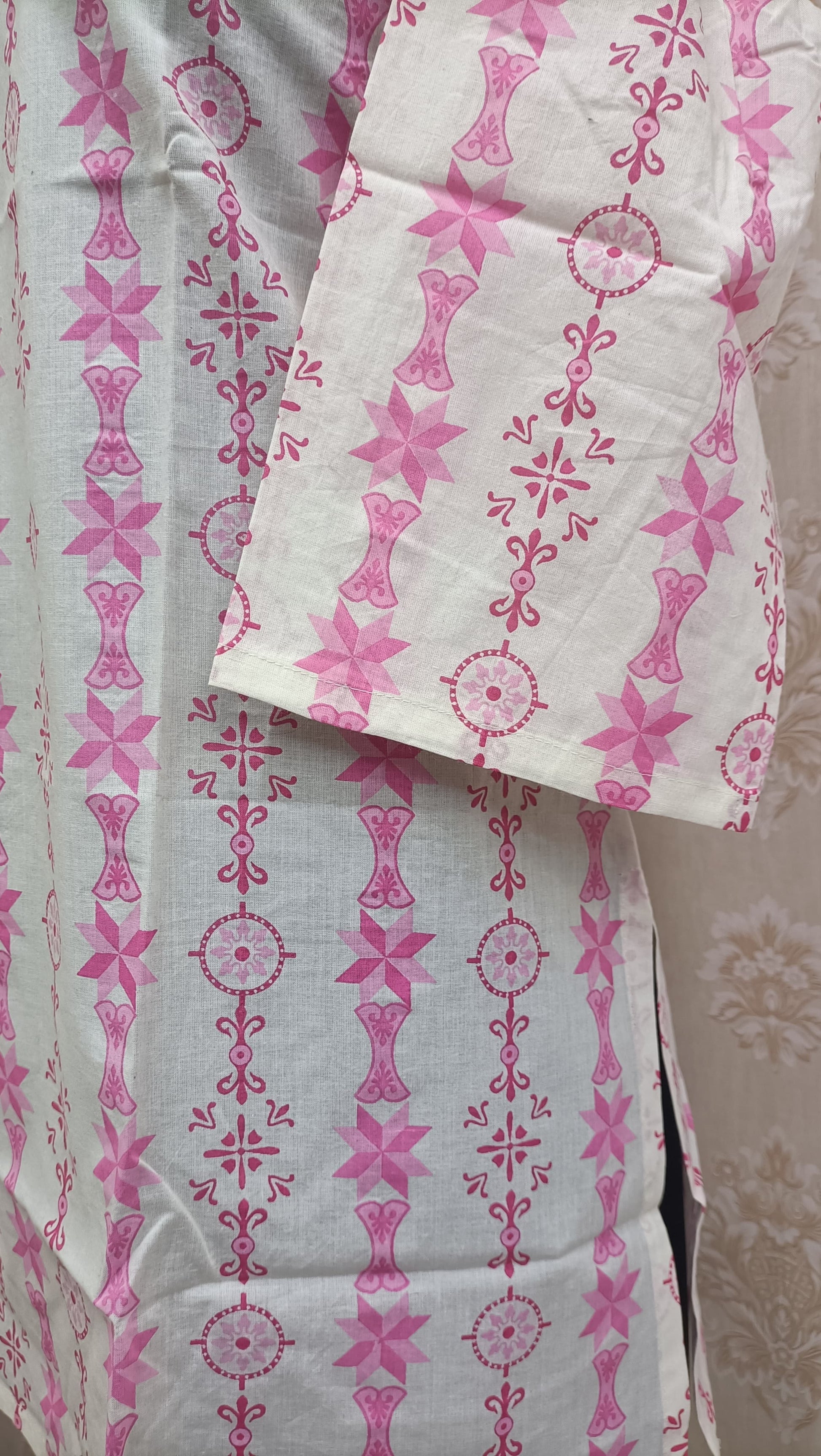 pink and white printed cotton kurti