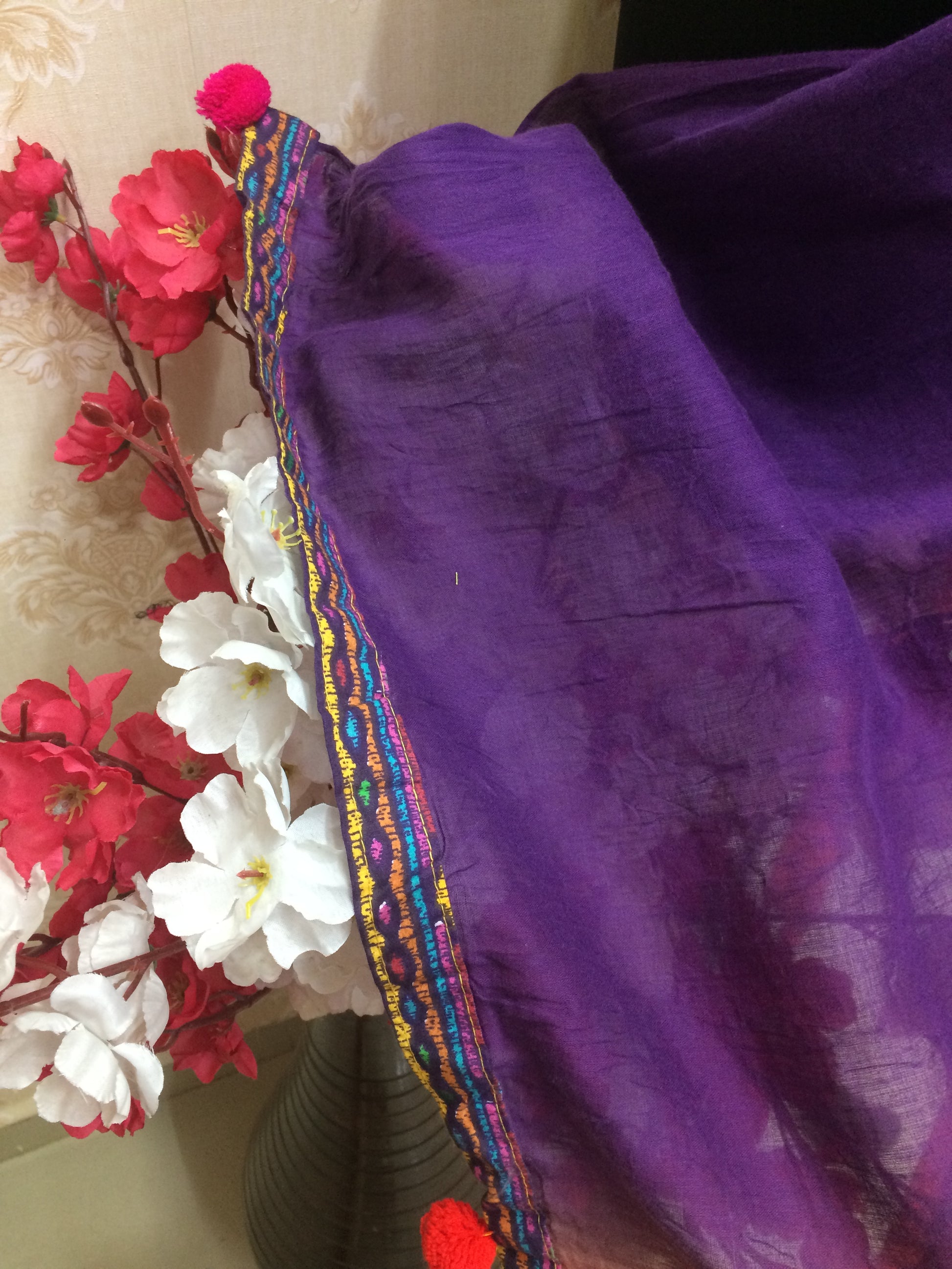 Elevate your traditional wear with this gorgeous dual-tone dupatta featuring a smooth ombre transition. This piece beautifully blends a rich purple (or magenta) at the top with a fiery saffron orange (or bhagwa) towards the bottom, creating a striking visual contrast.