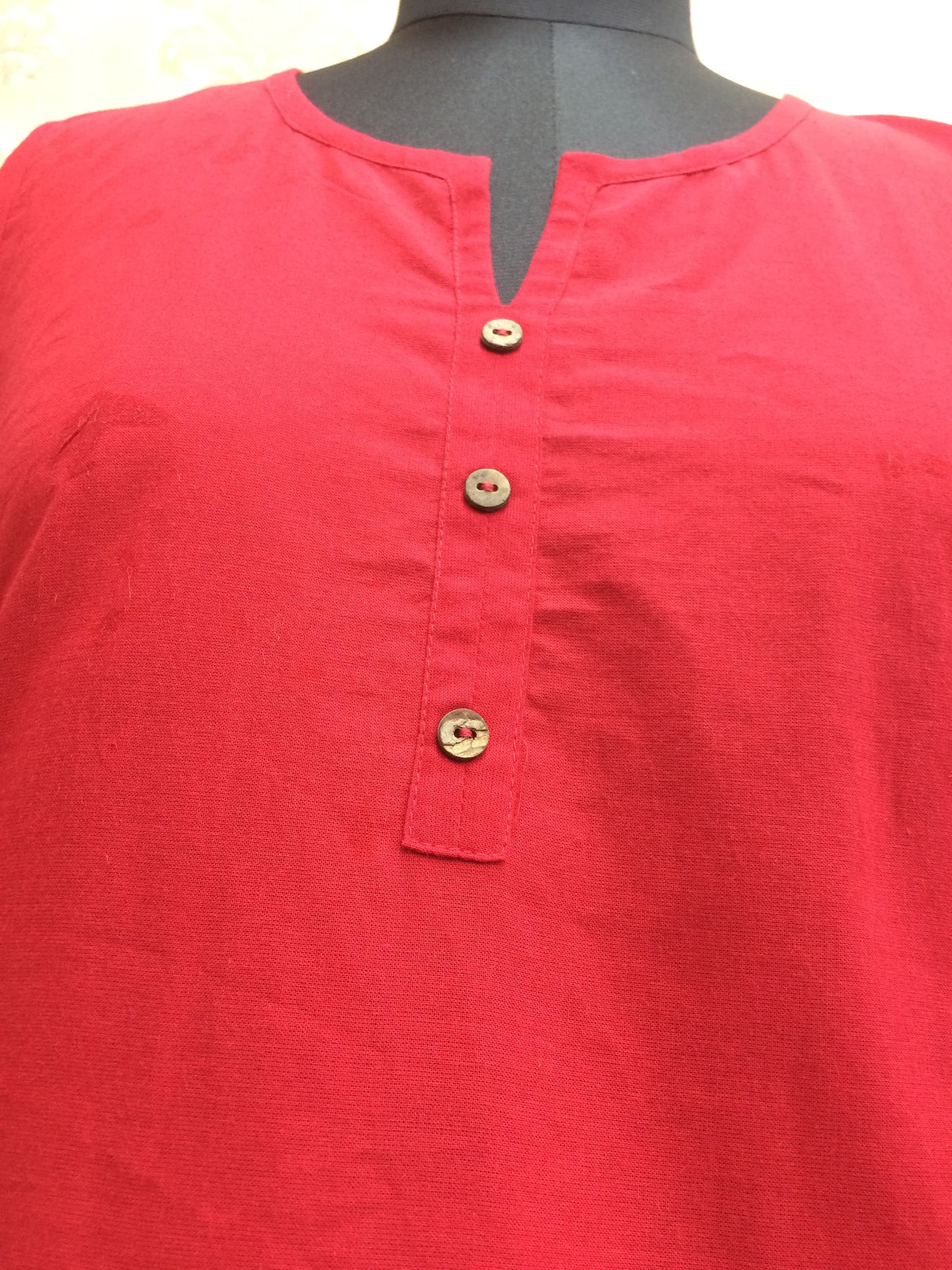 This timeless tunic is crafted from a soft, breathable cotton fabric (or similar light fabric—specify actual fabric for best results), making it an ideal choice for everyday wear, especially in warm climates. The vibrant, rich red hue is eye-catching and flattering on every skin tone.